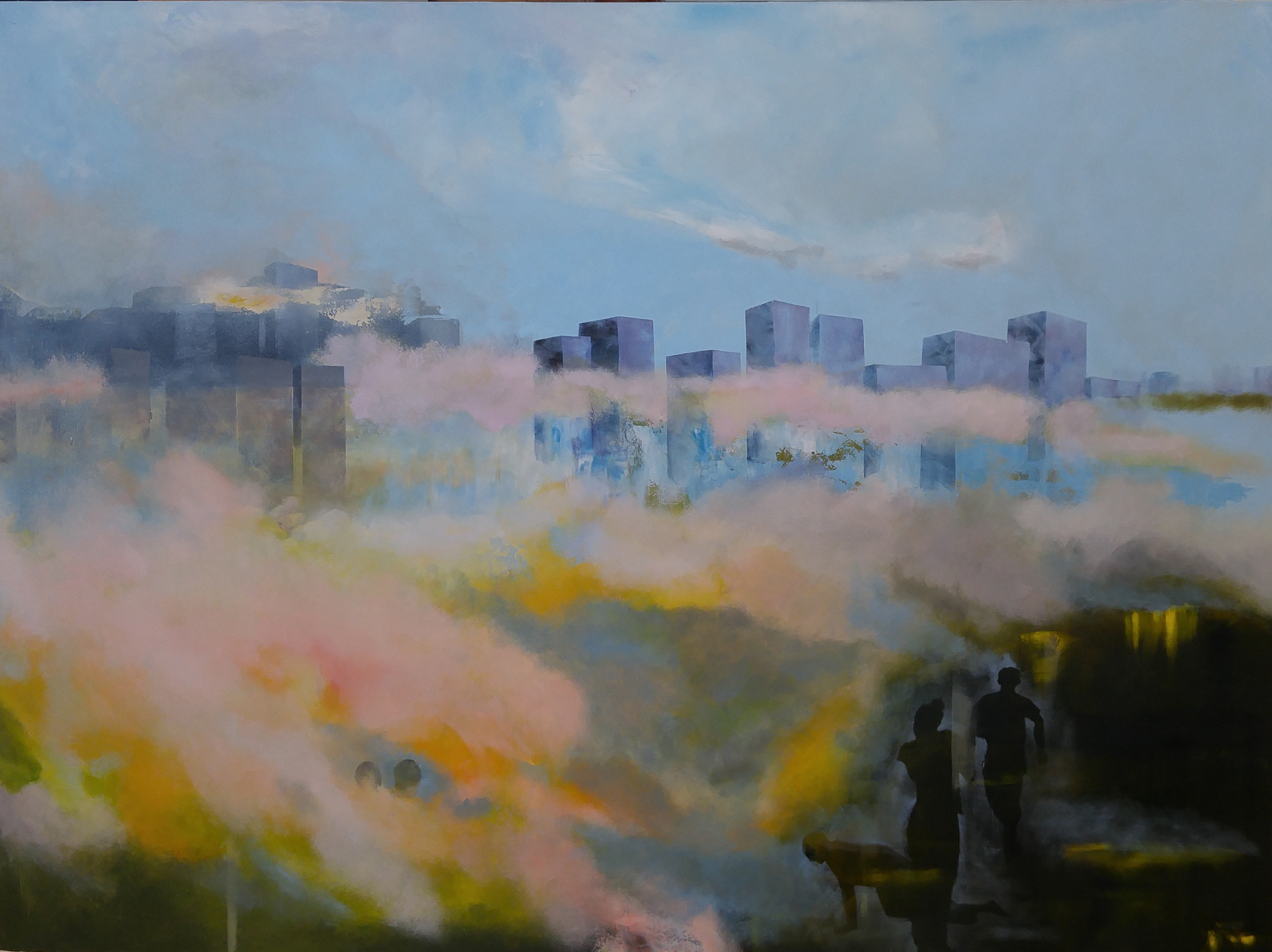 Skunk Gun is dispersed as a form of yellow mist, fired from a water cannon, which leaves a powerful odour similar to rot and sewage on whatever it touches. Smell cannot be washed off and persists for 3 days. 30″x40″ Huile sur bois/ Oil on wood panel